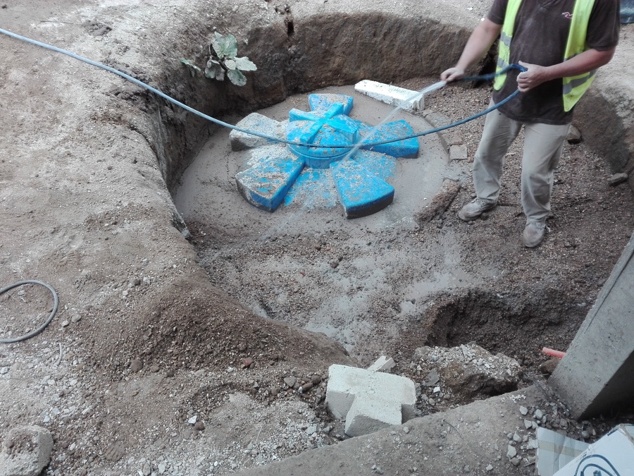 COLOCACION DE UNA CISTERNA DE POLIETILENO EN UNA CASA EN CONSTRUCCION. SE MUESTRA EL PROCESO DE LOS TRABAJOS DE OBRA CIVIL PARA LA COLOCACION DE UNA CISTERNA PREFABRICADA EN LA COCHERA